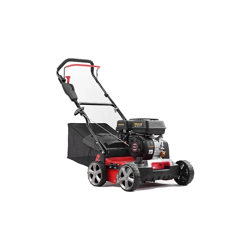 Arieggiatore a spinta con motore OHV da 212cc. a benzina. Sacco di raccolta da 45 lt. Larghezza di lavoro 40 cm. Dotato di 18 lame e 24 molle. Scocca in lamiera. Ruote da 210 mm.