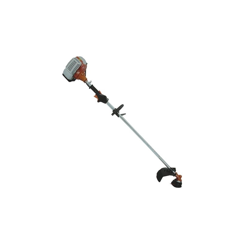 Decespugliatore con motore 2 tempi. Carburatore Walbro. Cilindrata 42,7 cm3 - 1,6HP. Asta trasmissione rigida diam. mm 26. Testina batti e vai, filo nylon diam.mm 2,4. Peso kg 7,8. Fornito di bretella, visiera, lama e testina