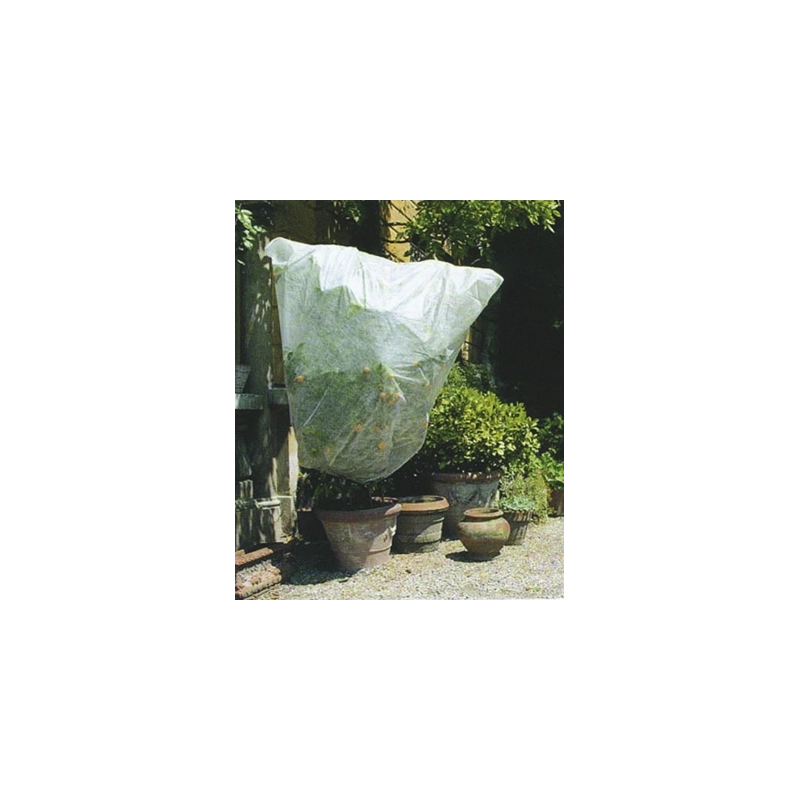 Tessuto non tessuto confezionato in sacchi. Impiego: difende dal gelo piante e fiori in vaso ricoverati all'esterno nel periodo invernale. Modello = peso tessuto gr/diametro cm/altezza cm/confezione da pz.