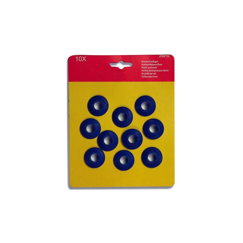Anelli in nylon per teloni. Chiusura a scatto. Confezione da 10 pz.