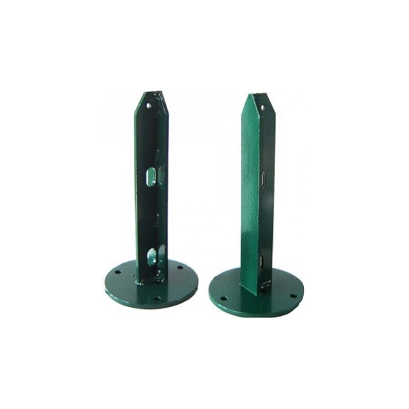 In acciaio verniciato per il fissaggio dei montanti a pavimento. Diametro palo 60 mm. Montaggio interno al palo. Forniti in coppia. Colore verde