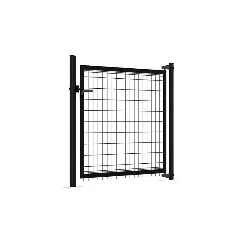 Riquadro: tubolare d'acciaio mm 40x40. Specchiature in pannelli Bekafor classic. Cerniere regolabili, serratura e cilindro integrati nella maniglia. Piantane diametro 60 mm. Larghezza totale 116 cm. Larghezza di passaggio 104 cm. Compresi di 6 collari diametro 60 mm. Colore antracite. Altezza 153 cm