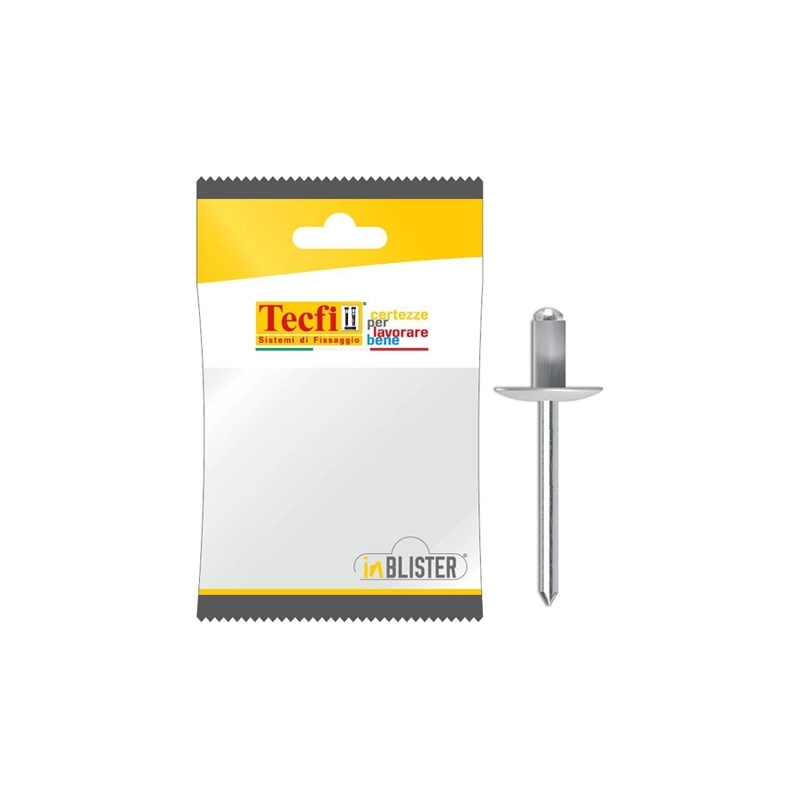 Modello = diam. rivetto mm/lunghezza rivetto mm/diam. testa mm/spessore fissabile mm/Confezione da pz