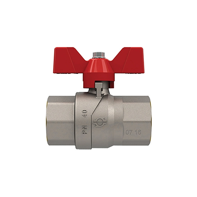 Valvola a sfera FF nichelata, con farfalla in alluminio verniciata. SERIE EVOLUTION. Con passaggio totale. Made in Italy. Modello = misura in pollici