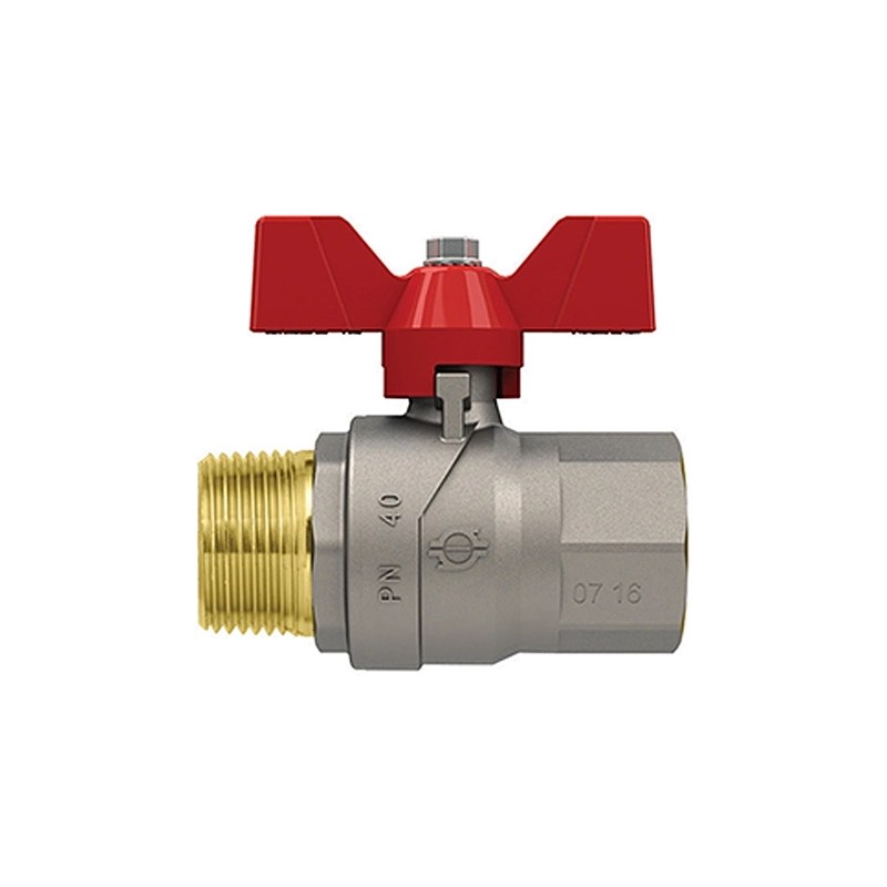 Valvola a sfera MF nichelata, con farfalla in alluminio verniciata. SERIE EVOLUTION. Con passaggio totale. Made in Italy. Modello = misura in pollici