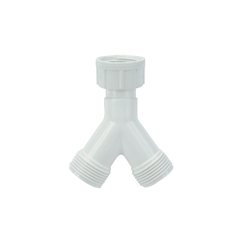 Raccordo in plastica a Y con ghiera girevole F 3/4 a due uscite M 3/4.
