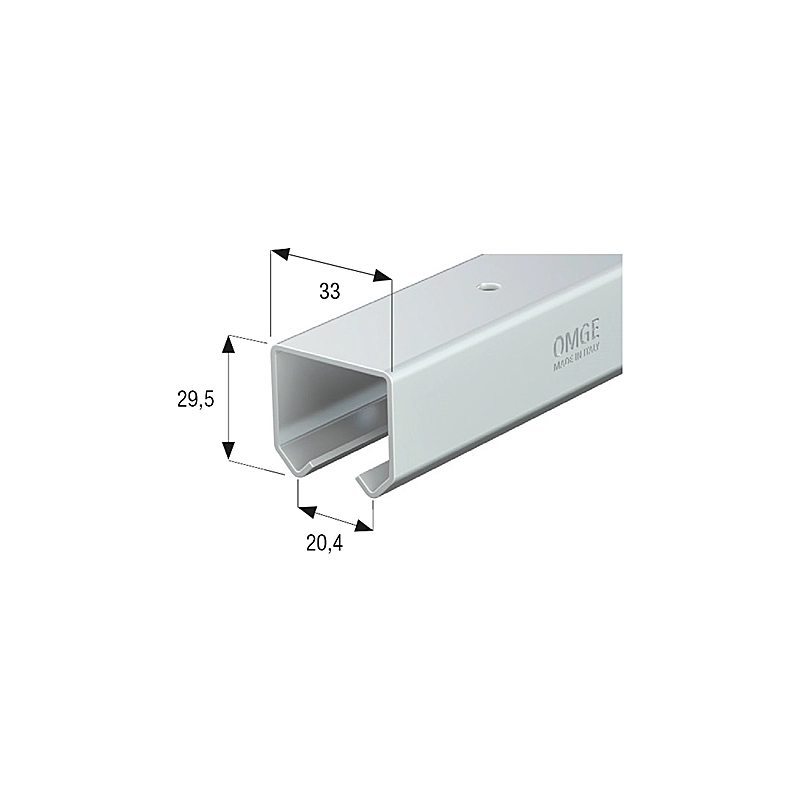 Con fori di fissaggio, lunghezza m 3, portata kg 100. Misura 33x29,5 mm.