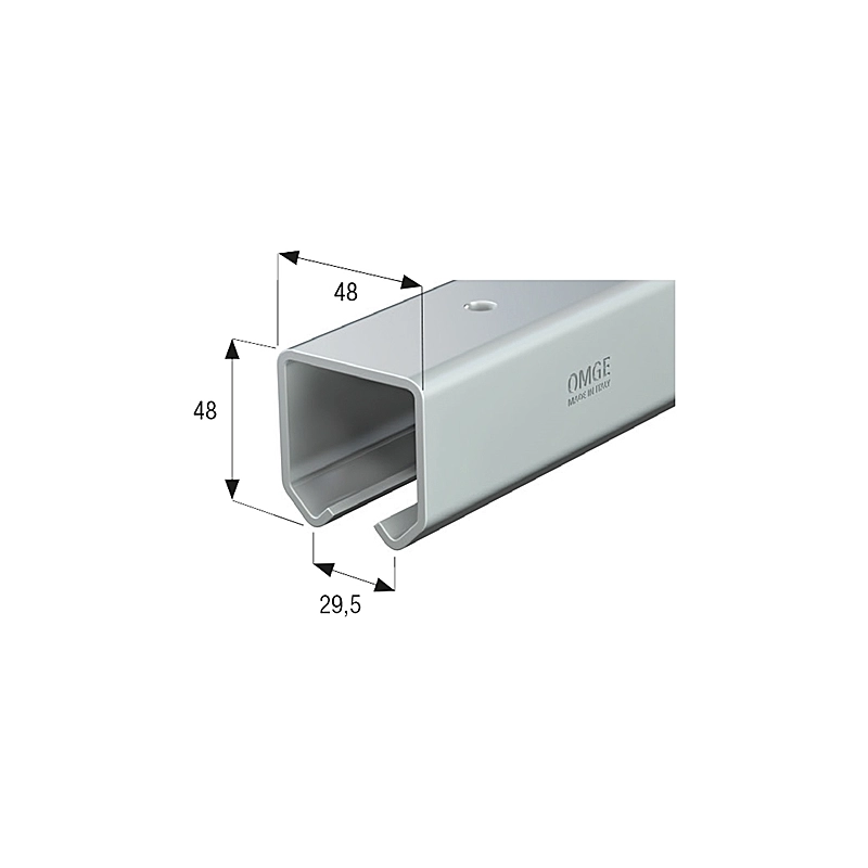 Con fori di fissaggio, lunghezza m 3, portata kg 350. Misura 48x48 mm.