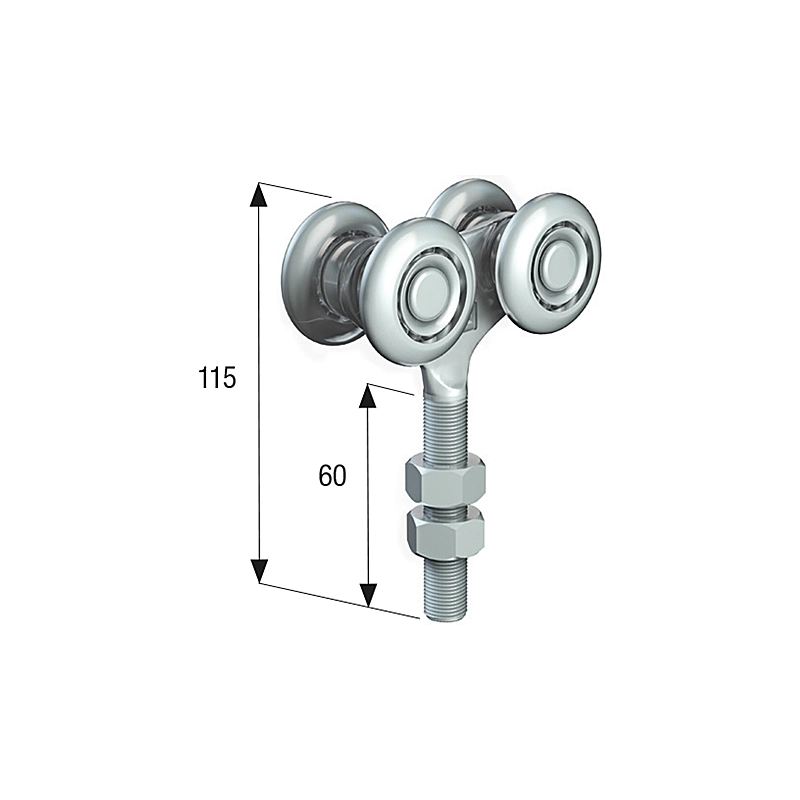 In acciaio con perno fisso filettato M12, ruote in acciaio diametro mm 38 a completa corona di sfere, portata kg 220