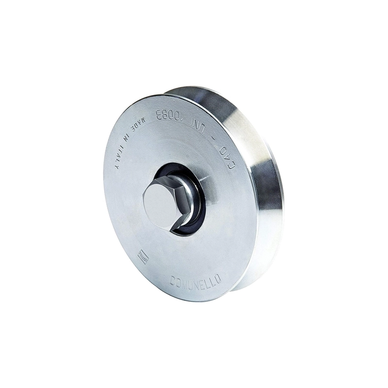 Ruota con gola a V. Con cuscinetti a sfera. Finitura: zincata. Modello = diametro mm