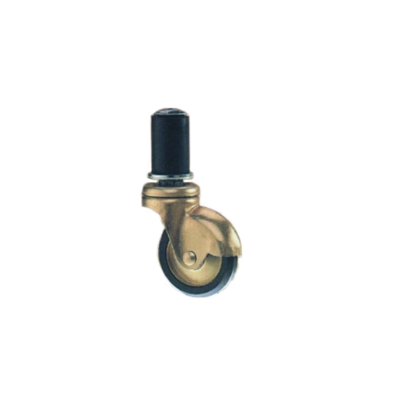 Ruote con supporto rotante ad espansione in gomma mm 18. Nucleo e supporto in lamiera ottonata. Diametro mm 35, portata kg 10