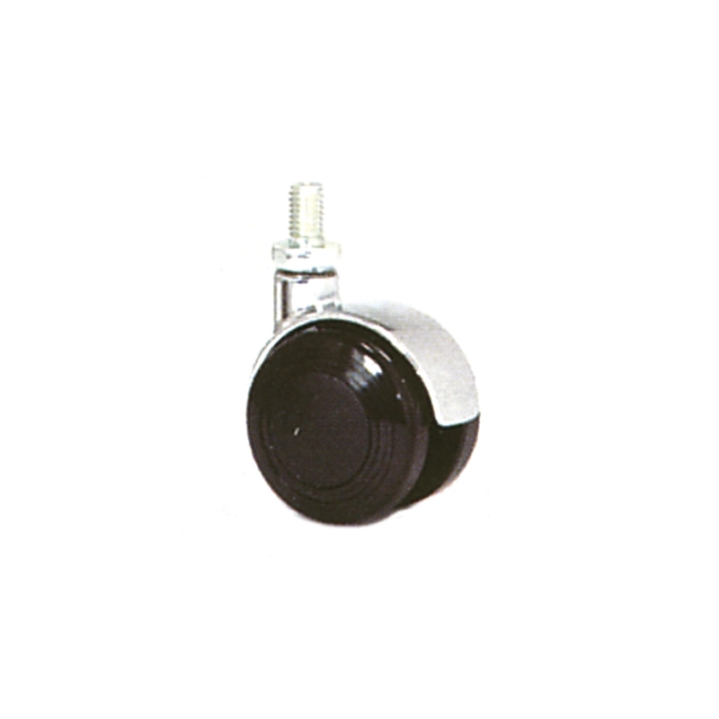 Supporto in lega di zama lucida. Ruota in poliammide 6 rivestita in poliuretano. Perno filettato lunghezza mm 15, ruote diametro mm 50. Portata kg 60. Modello = filetto