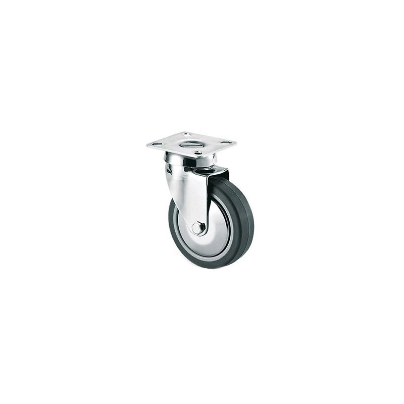 Supporto in acciaio cromato, ruota in gomma grigia. Modello = diametro mm/portata kg
