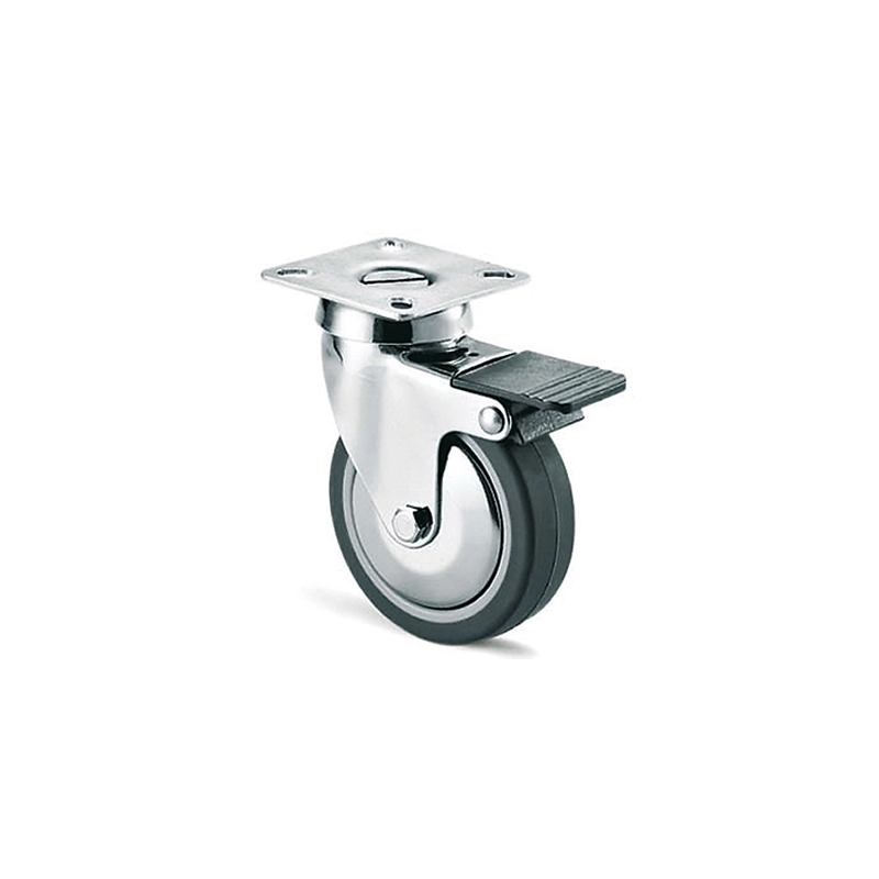 Supporto in acciaio cromato, ruota in gomma grigia. Modello = diametro mm/portata kg