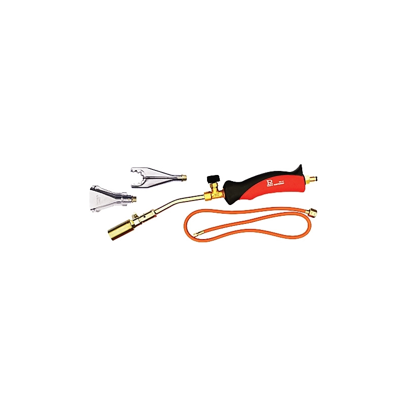Kit per scaldare, saldare, sverniciare composto da cannello da 41 cm, 3 bruciatori intercambiabili da mm 17 - 22 - 40. Tubo m 1,5 e chiavi.