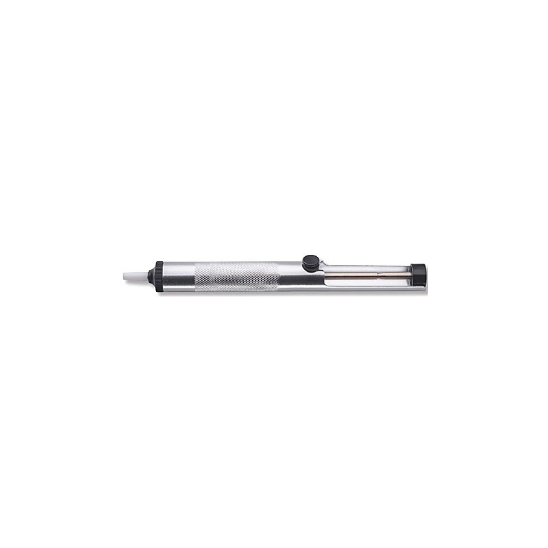 Pompa dissaldante a stantuffo. Adatta alla rimozione profonda dei vecchi punti di saldatura grazie all'elevata capacita' di aspirazione. Punta smontabile che consente il riutilizzo dello stagno rimosso.