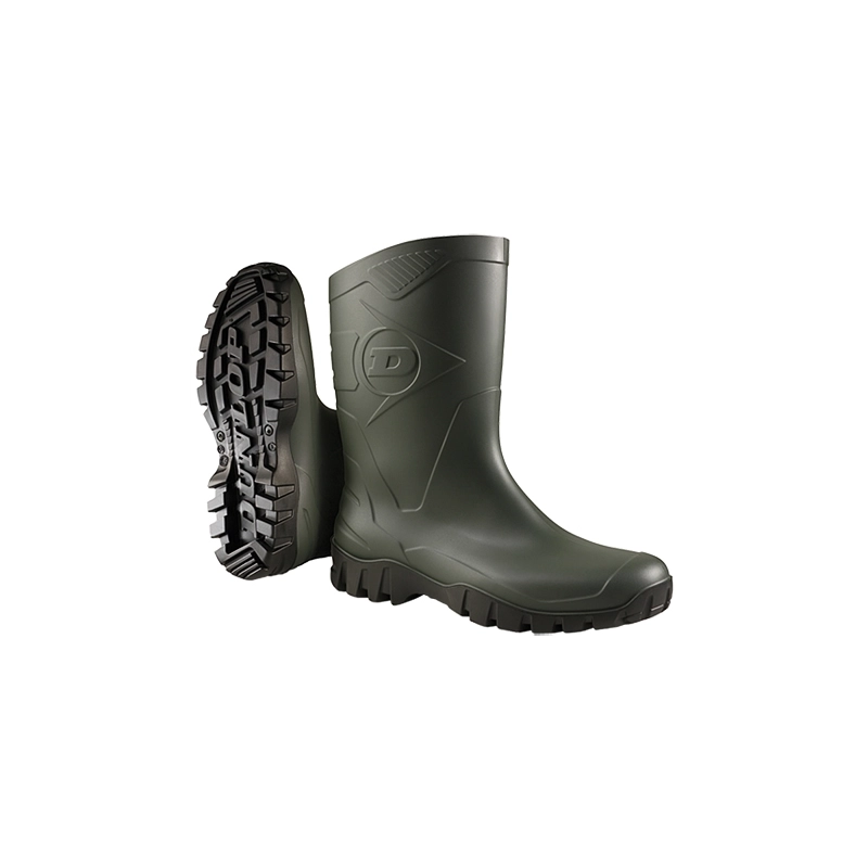 Stivali tronchetto professionali Dunlop Dee, in PVC con interno in poliestere e suola a carroarmato. Colore verde. NORMATIVA: EN ISO 20345:2011. Modello = taglia