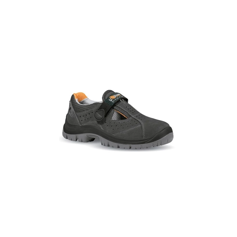 Scarpa antinfortunistica con tomaia in pelle scamosciata grigia. Fodera a tunnel d'aria traspirante. Lamina acciaio antiforo ergonomica. Puntale in acciaio, traspirante. Suola PU antiolio, antiscivolo ed antistatica. Modello con pianta larga. Modello = taglia.