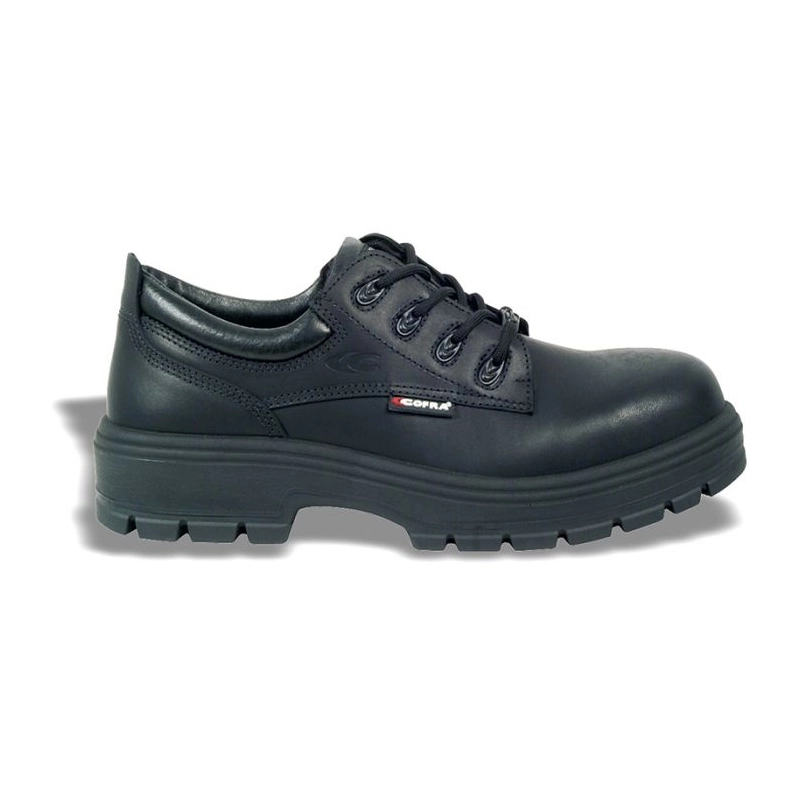 Scarpa antinfortunistica bassa della linea Cofra OFF ROAD con tomaia in pelle fiore idrorepellente, lamina antiperforazione APT Plate - Zero Perforation in tessuto e puntale TOP RETURN in materiale composito. La fodera � in CAMBRELLE, 100% poliammide, antibatterica. La suola resistente fino a temp. di 300� C � stampata con una mescola di poliuretano profumato e gomma nitrilica.