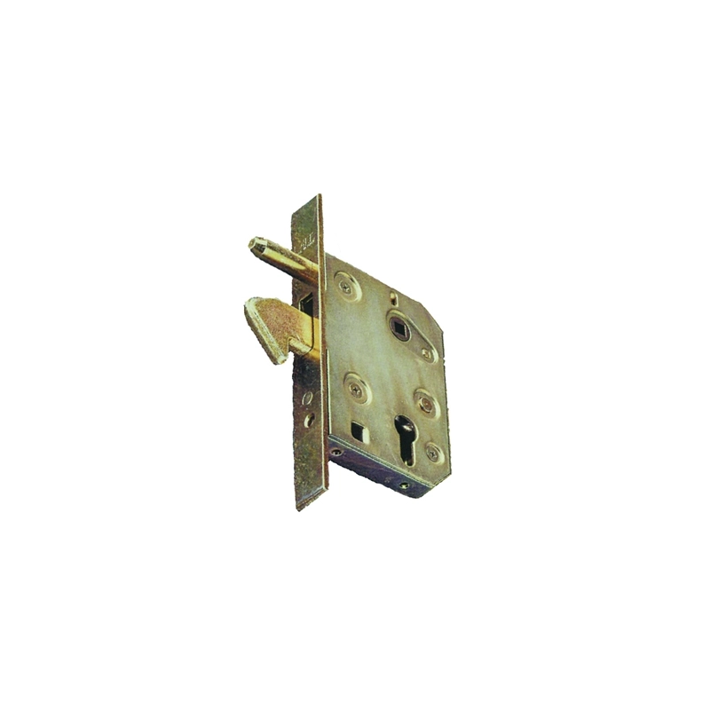Per cancelli e porte scorrevoli. Serratura a gancio, dimensioni frontale mm 210x25. Entrata mm 60. Quadro mm 8, interasse mm 72