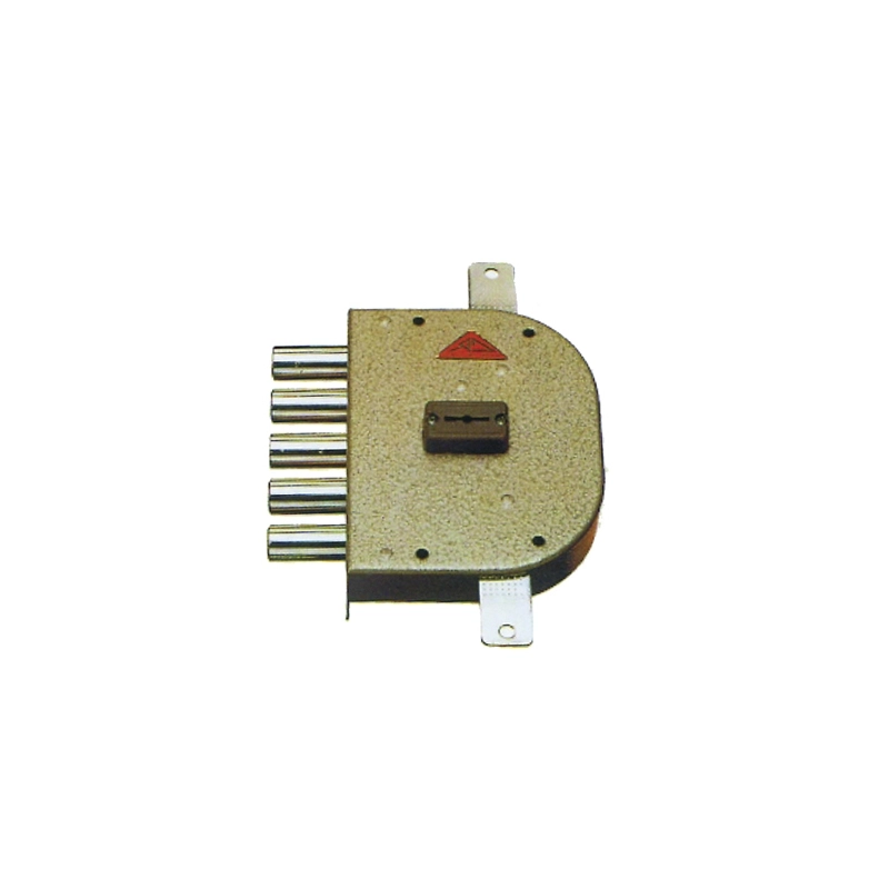 Chiusura triplice senza scrocco, a 4 mandate, con piastra corazzata e non fornita di aste, cilindro con chiave a doppia mappa. Dimensioni scatola mm 130x164. Entrata mm 60. Modello = destra o sinistra