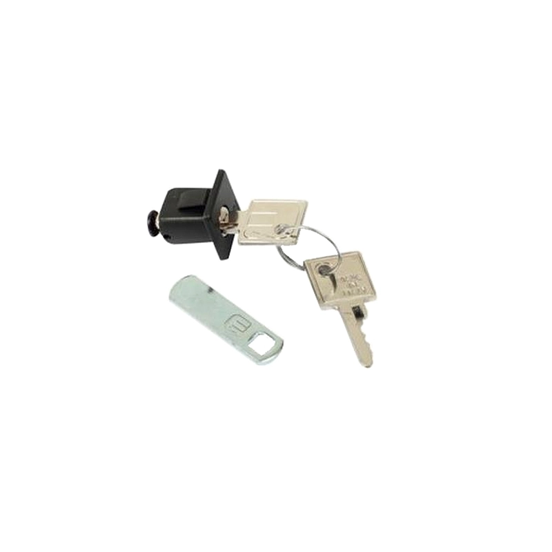 Serratura per antine in metallo con fissaggio a pressione. In blister da 1 pz.