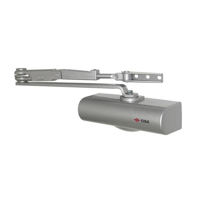 Corpo monoblocco in alluminio, carter in nylon. Braccetto in acciaio con arresto, forza e velocita' di chiusura, potenza del colpo finale e posizione arresto porta regolabili. Larghezza porta max cm 85. Modello = colore