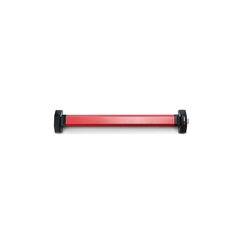 Maniglione con scrocco laterale escludibile. Possibilita' di abbinamento a chiusure supplementari serie 07A63 azionabili da cavo o aste. Leve e carter color nero, barra colore rosso. La forma angolata offre una superficie di contatto sicura e senza oscillazioni, rumori e frizioni. Fissaggio rapido con tenuta perfetta e duratura. Brevetto depositato. Certificati CE. Lunghezza totale cm 120.