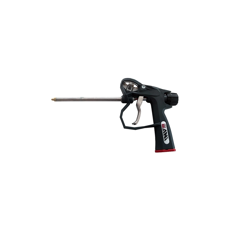 Pistola per schiume poliuretaniche in tecnopolimero ad alta resistenza. Valvola interamente in metallo, guarnizioni tenuta in PTFE e premistoppa regolabile. Protezione della leva per evitare perdite accidentali. Regolazione con pomello ergonomico a passo rapido. Inserito nel manico un comodo accessorio per la pulizia del puntale e della valvola dai residui di schiuma indurita.