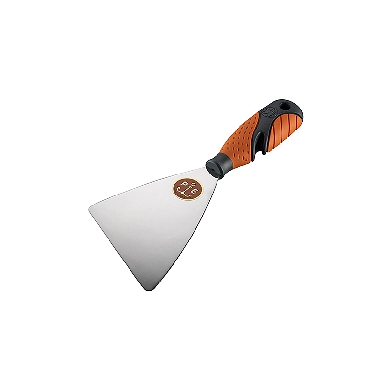 Spatola in acciaio inox per rasatura e lucidatura marmorino con lama obliqua e angoli arrotondati. Manico in materiale antiscivolo e antivibrazione. Modello = larghezza mm