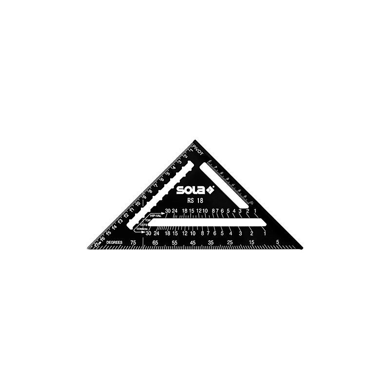 Squadra multifunzione in alluminio con scala mm/cm. Multifunzione: righello, squadra con battuta, squadra obliqua, goniometro, guida di tracciatura, guida di taglio e misuratore per travetti. Colore nero. Modello = art.fornitore/dimensioni mm