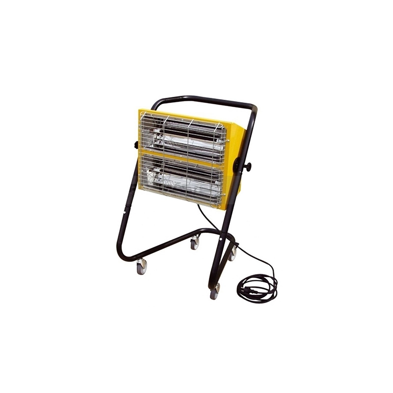 Stufa alogena a raggi infrarossi. Potenza w 1500 + 1500 con lampadine azionabili singolarmente tramite doppio interruttore. Telaio in acciaio, cavo alimentazione in gomma da m 2. Dimensioni (lxpxh) cm 55x34x64. Peso kg 13