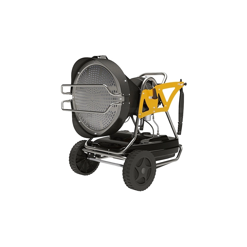 Funzionante a gasolio. Riscalda per irraggiamento, senza movimentazione d'aria. Alta silenziosita', dotato di controllo fiamma con fotocellula. Due livelli di potenza kW 29 e 43 - kcal./h 25.000 e 37.000. Dimensioni 710x970x990 mm. Capacita' serbatoio 60 lt. Peso 69 kg