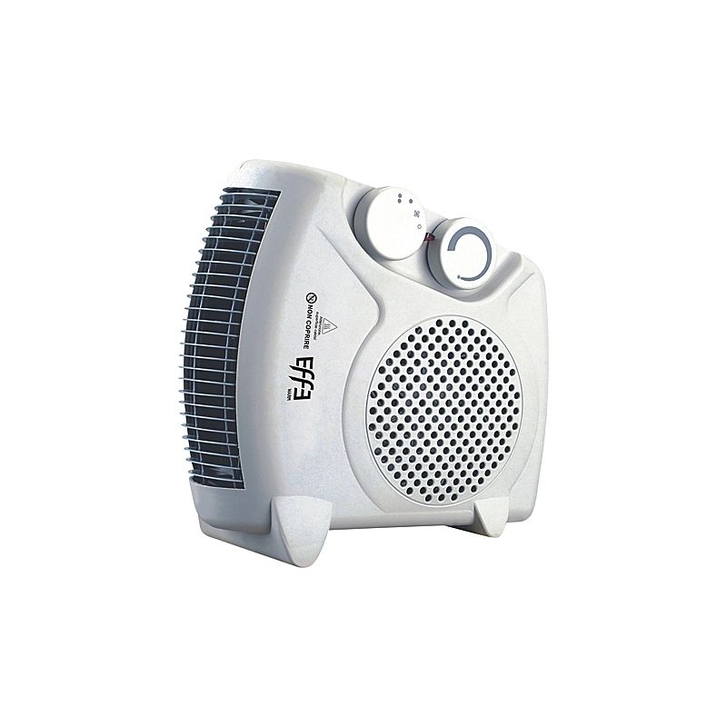 A 4 regolazioni (spento, aria fredda, aria calda 1000w, aria molto calda 2000w). Termostato ambiente. Dispositivo antisurriscaldamento. Possibilita' di utilizzo in posizione verticale o orizzontale.