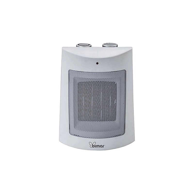 Termoventilatore fisso con resistenza in ceramica PTC. 2 livelli di potenza (750/1500 Watt). Termostato ambiente regolabile. Interruttore antiribaltamento. Spia luminosa. Corpo in plastica, griglia frontale in metallo. Dimensioni 194x241x151 mm. Peso 1,3 kg.