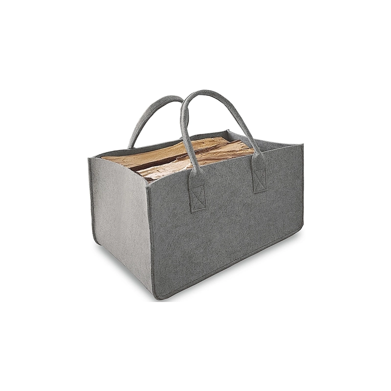 Borsa in feltro. Ideale per trasportare e riporre legna. Maniglie molto resistenti. Portata 20 kg. Dimensioni 50x27x34 cm. Colore grigio.