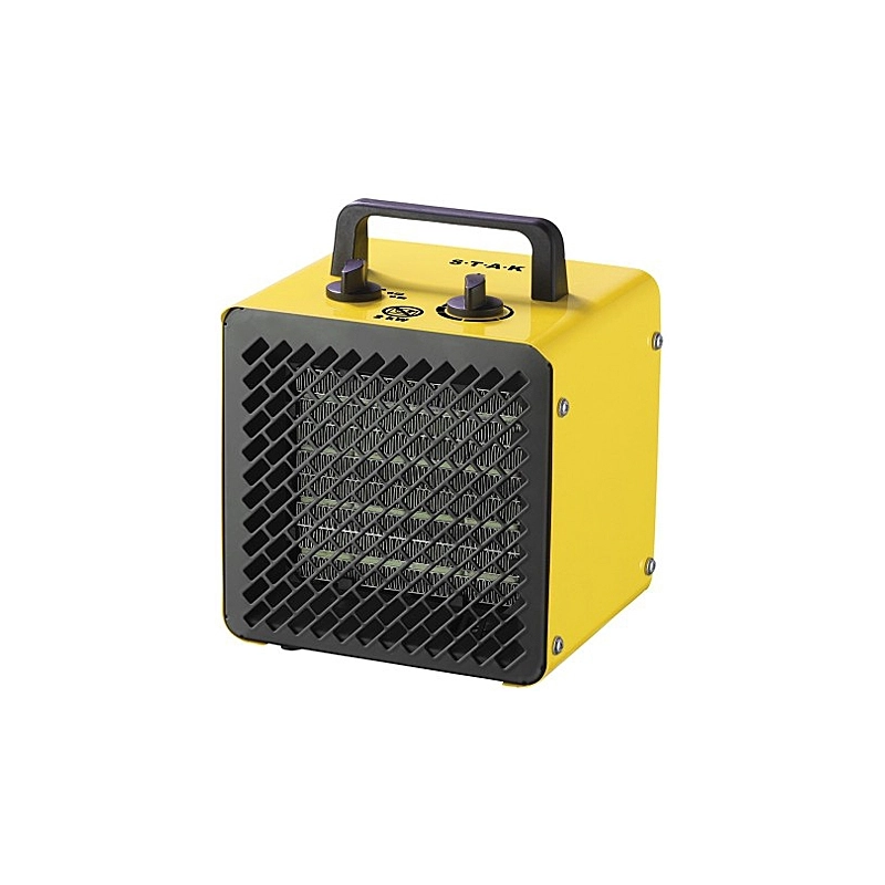 Generatore di aria calda da 2 KW. Tecnologia ceramica PTC per un caldo piu' veloce. Con 2 regolazioni (1 KW o 2 KW), termostato di sicurezza e funzione ventilatore. Cavo da 140 cm con presa CEE 7/7 (schuko). Struttura in metallo. IP20. Dimensioni 141x122x178h mm.