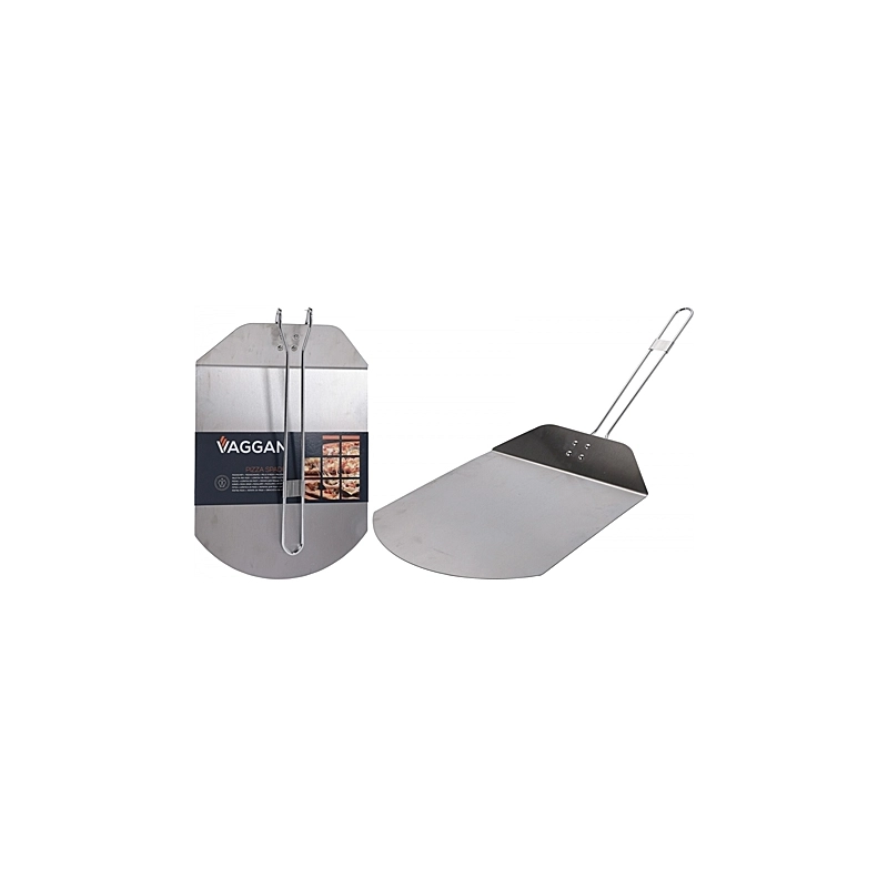 Pala inox per pizza. Dimensioni 25x35 cm. Pochissimo ingombro grazie al manico richiudibile.