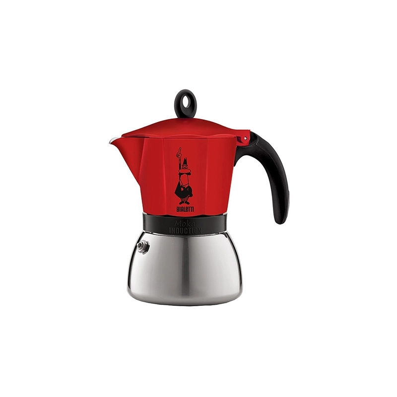 Moka adatta per i piani ad induzione. Parte superiore in alluminio, parte inferiore in acciaio, con manico in silicone soft touch, ergonomico, antiscottatura e antibruciatura. Modello = numero tazze/colore