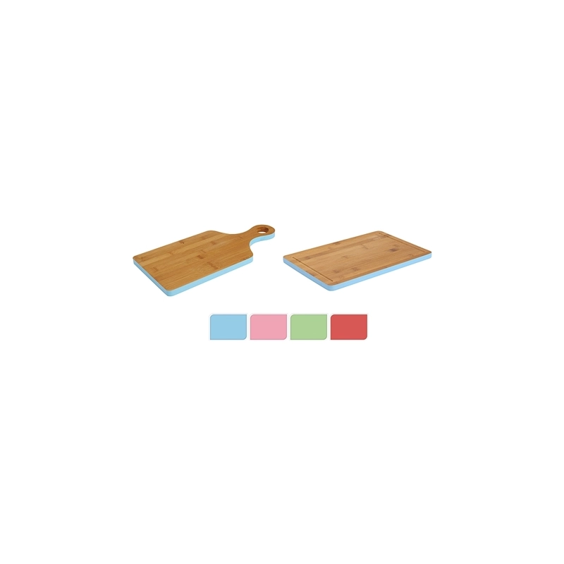 Taglieri in bambu' con bordo colorato. Colori pastello assortiti. Modello = dimensioni cm/tipo