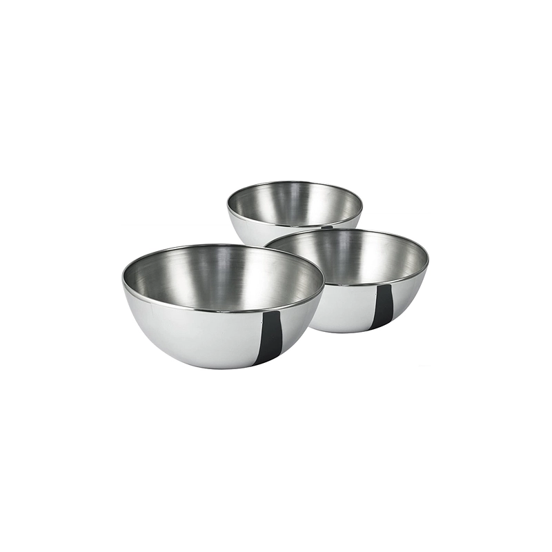 Set composto da 3 insalatiere in acciaio inox di diametro 15, 20 e 23,5 cm.