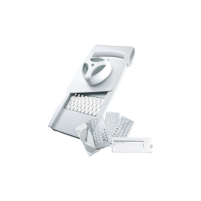 Completa di 5 lame intercambiabili in acciaio inox. Colore bianco.