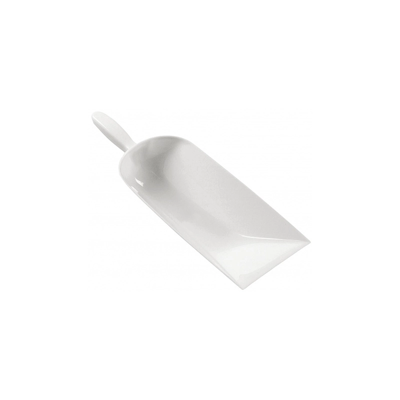 Sessola rettangolare in polipropilene. Colore bianco. Idoneo al contatto con gli alimenti. Lunghezza 43 cm.