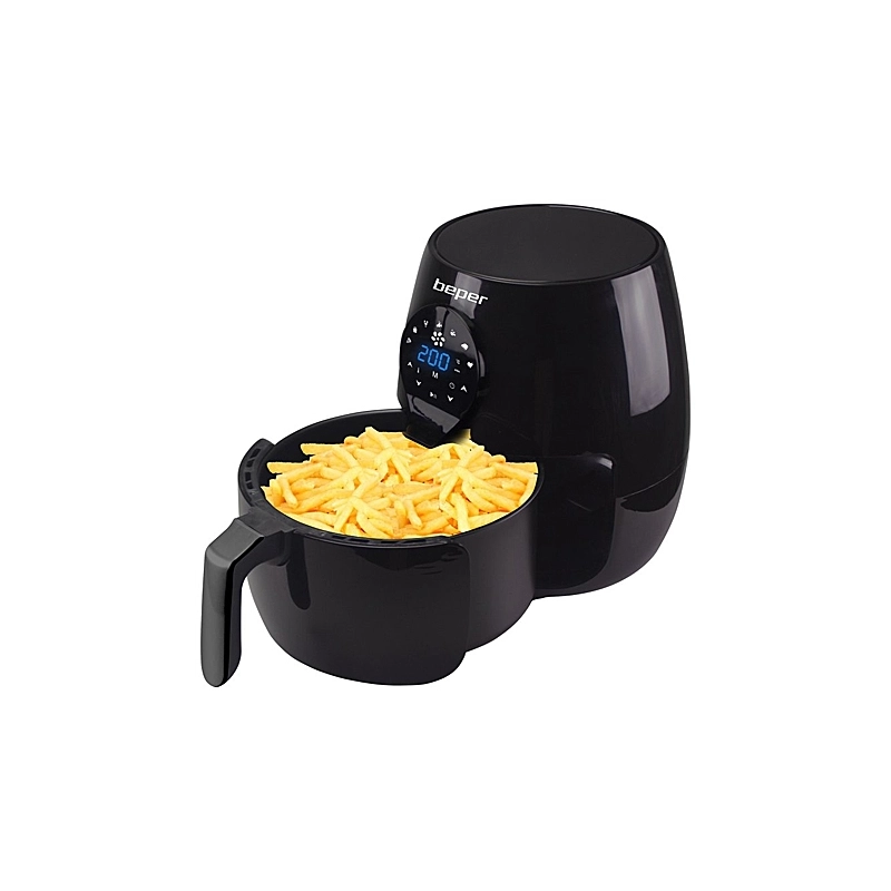 Friggitrice ad aria calda che permette di friggere senza o con pochissimo olio. Ideale anche per arrostire, cuocere e grigliare. Pannello di funzionamento digitale con sensore a sfioramento sensibile per scegliere tra i 7 programmi preimpostati e per regolare la temperatura tra 80 e 200 gradi. Protezione contro il surriscaldamento. Capacita' 5 lt.