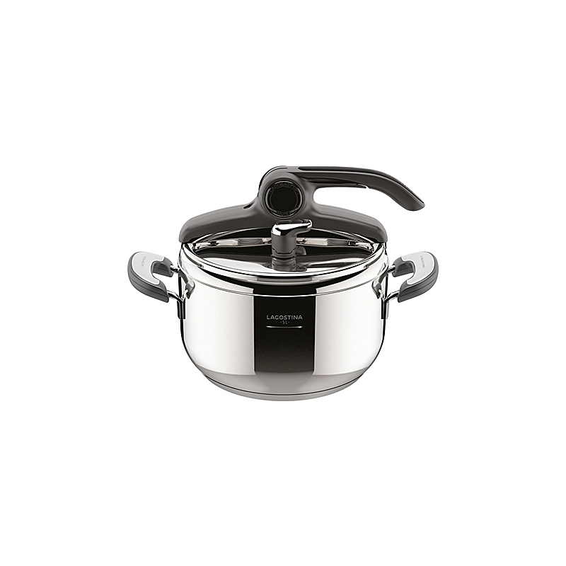 Pentola a pressione di diametro 22 cm. Incluso: misurino ecodose. Con sistema LAGOEASY'UP per un'apertura in un unico movimento, senza sforzo. Con valvola d'esercizio a scarico verticale di vapore. Adatte anche per induzione e piastra elettrica. Modello = capacita' lt