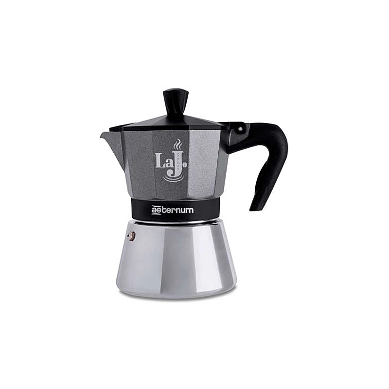 Moka adatta per i piani ad induzione. Parte superiore in alluminio, parte inferiore in acciaio, con manico e pomolo termoisolante e guarnizione in silicone. Modello = numero tazze