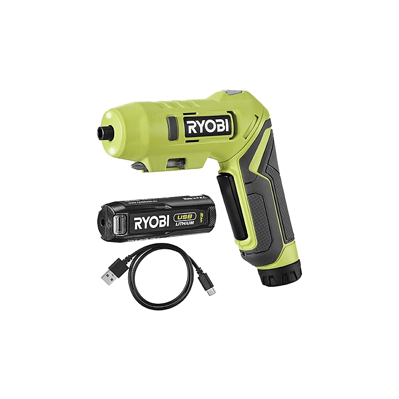 Impugnatura a pistola oppure diritta. 2 Ah. Velocita' 0-200 giri/min. Coppia da 5 Nm. Batteria da 4 V integrata. Fornito con cavo per ricarica della batteria e 2 bits. Peso 0,27 kg.
