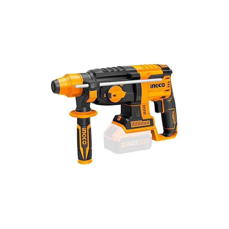 20 V. Motore BRUSHLESS. 2,0 J. 0-1100 giri/min. Perforazione max 26 mm su calcestruzzo. Luce led integrata. Con 3 punte e 1 scalpello. Fornito senza batteria.