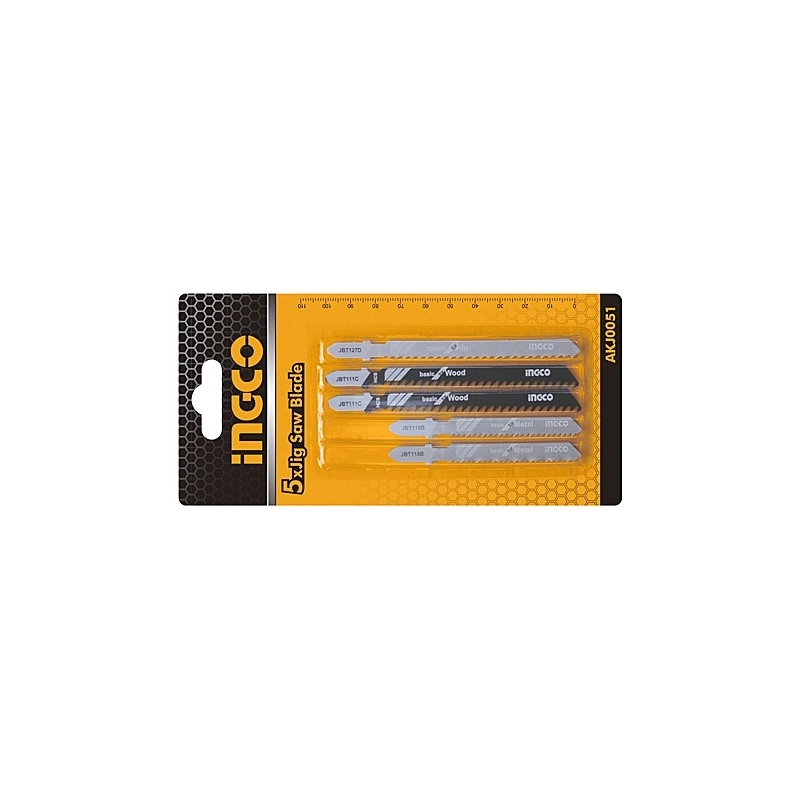 Set di 5 lame per seghetto alternativo composto da: 2 lame per legno, 2 lame per metallo e 1 lama per alluminio