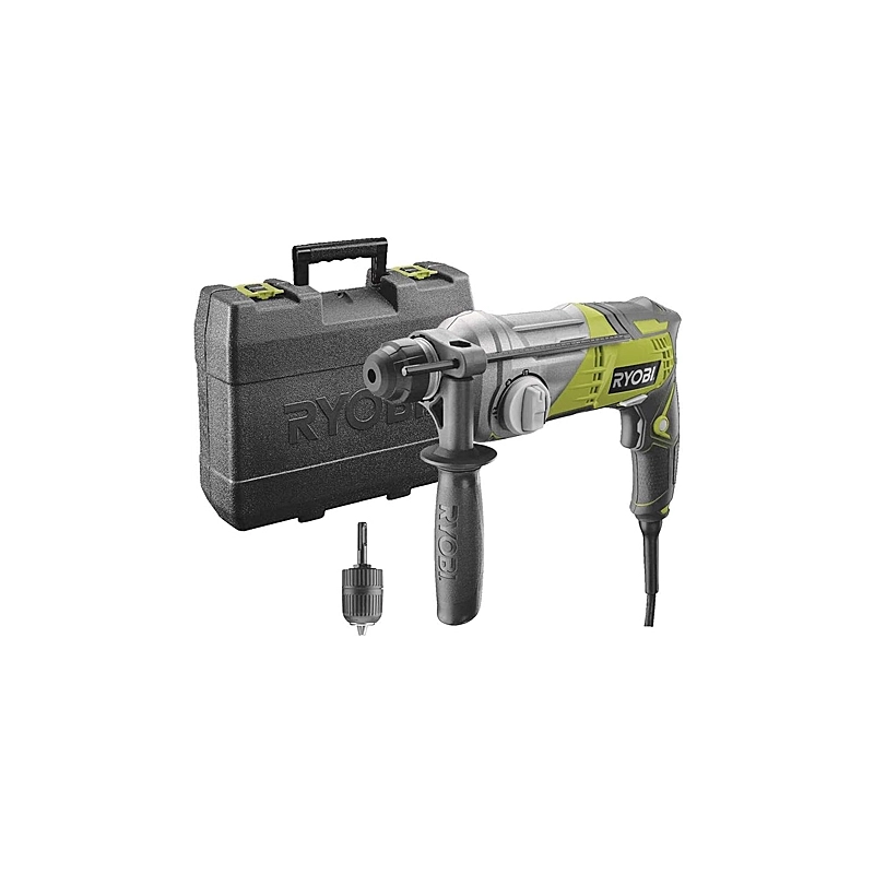 Potenza 680 W. Velocita' a vuoto 0/2150 giri/min. Percussioni 0-5000 colpi/min. Attacco SDS-PLUS con 4 modalita' di lavoro (tassellatore, avvitatore, scalpellatore, posizione scalpello regolabile). Foratura legno 30 mm, metallo 13 mm, muratura 22 mm. Energia colpo 2,1 J. Inclusi: adattatore per mandrino autoserrante, impugnatura anteriore regolabile 360 gradi e valigetta